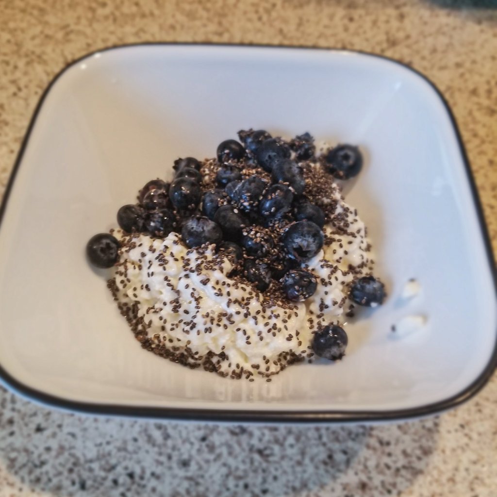 Desert: Chia Seeds, Cottage Cheese and Blueberries.