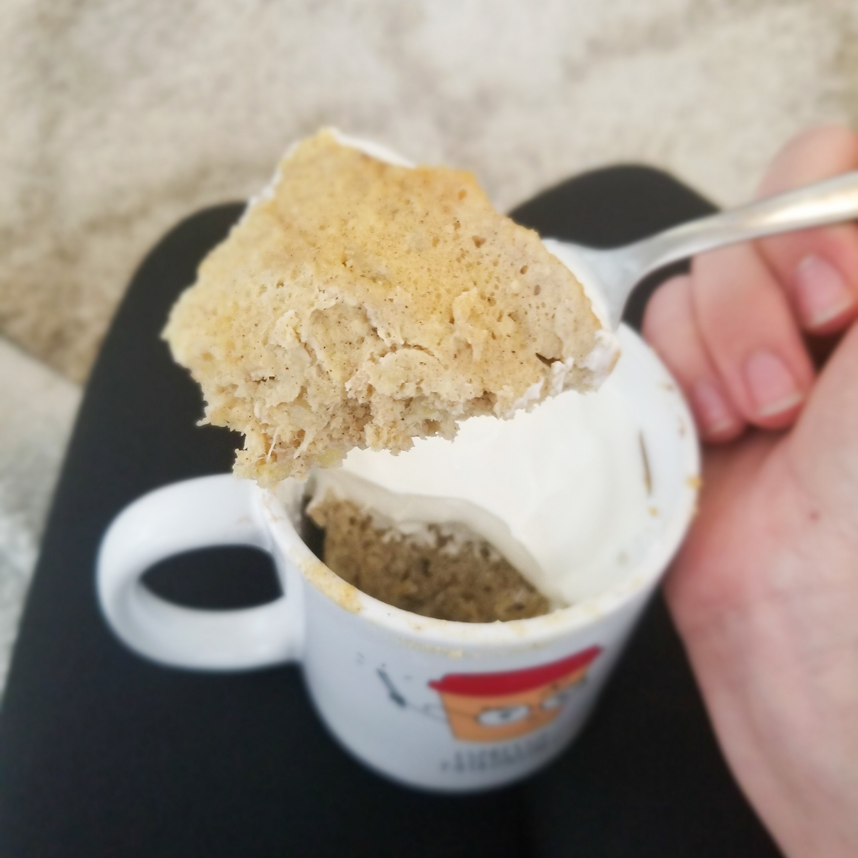Breakfast: coffee with fat free coffee creamer-can’t live without my creamer! Banana Mug Cake With Greek Yogurt.