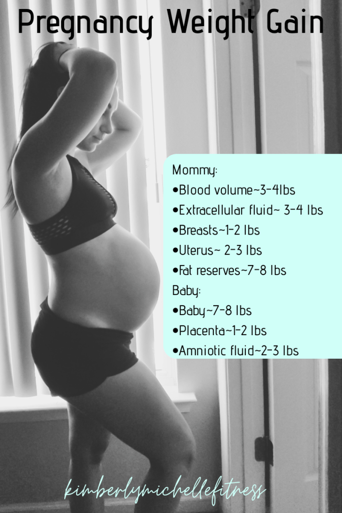 Many women can feel like this is a lot of weight to gain for 7 lbs baby! But it takes a lot to grow a baby! Theres extra blood, extra fluids, fat reserves, more breast tissue, the uterus enlarges, the baby has the placenta and amniotic fluid as well. All of this weighs quite a bit. But everyone will gain different amounts of all these factors.